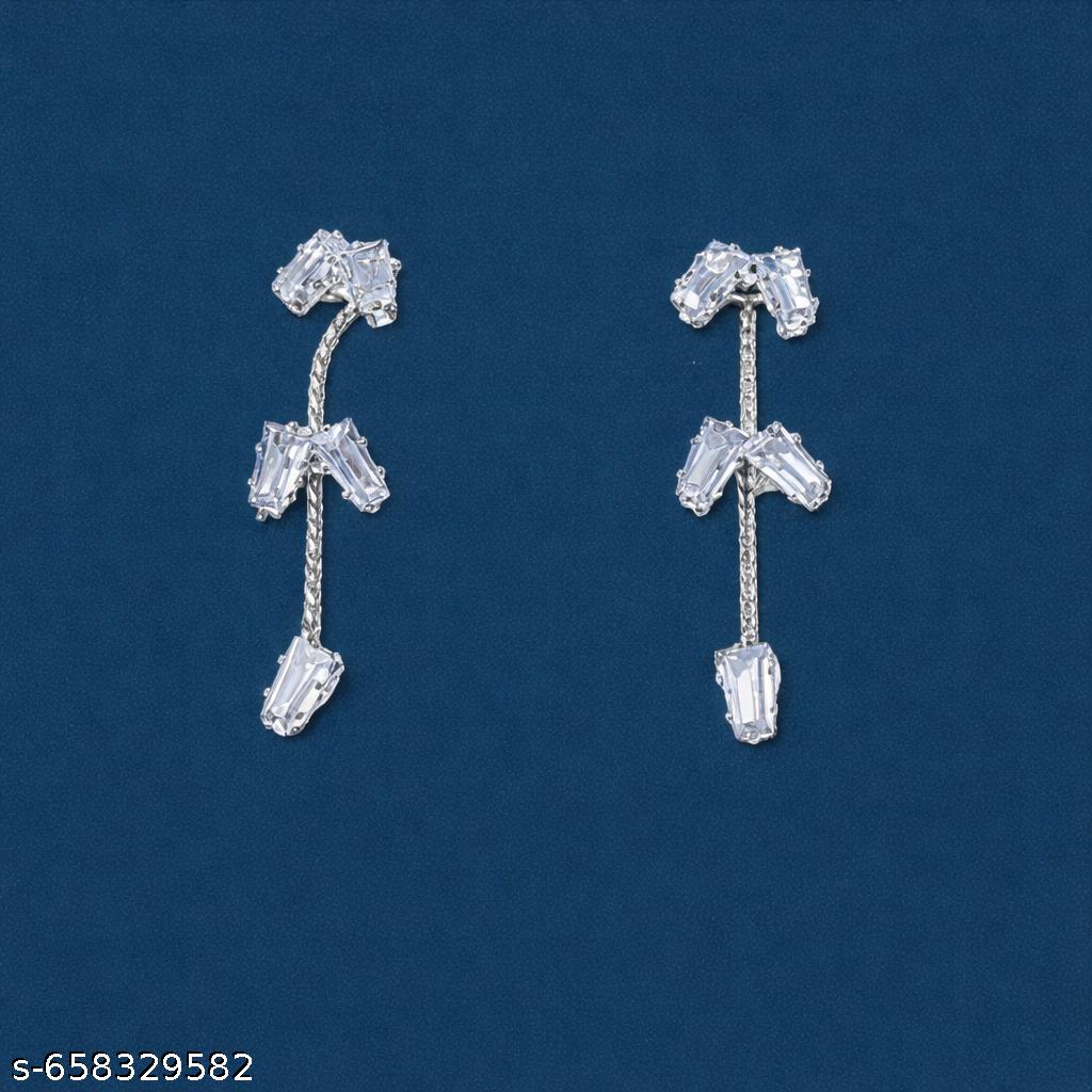 Silver Finish Necklace Set | Party & Wedding Wear | Necklace Set with Matching Drop Earrings